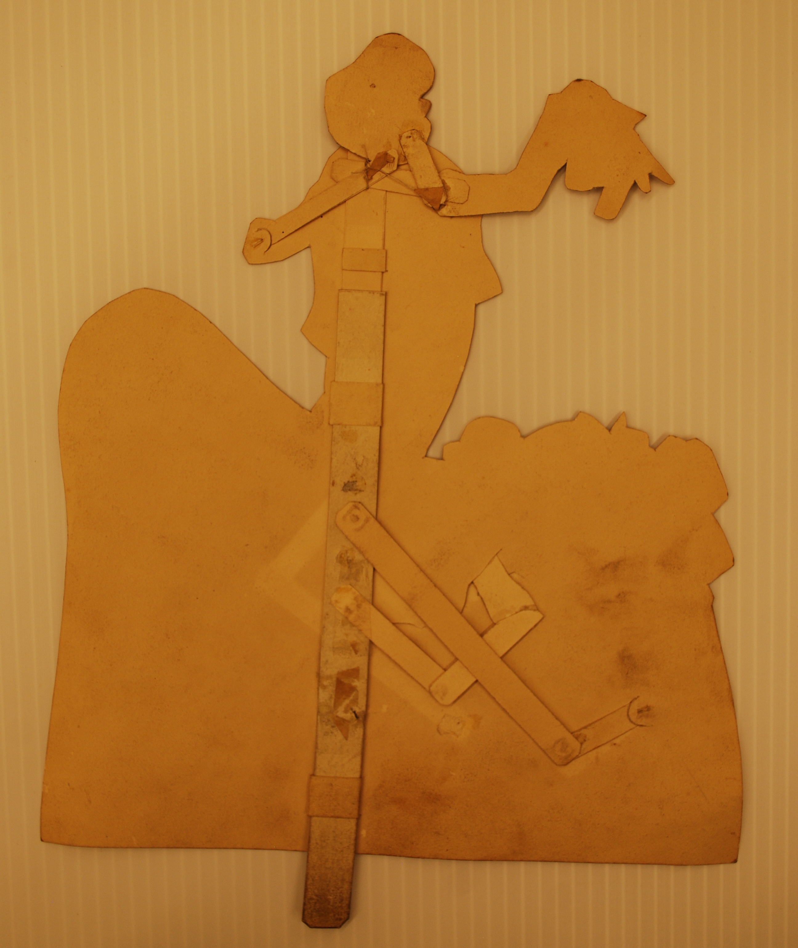 The reverse: the paper tab at the bottom, when pulled up and down, maneuvered the main figure’s right arm.