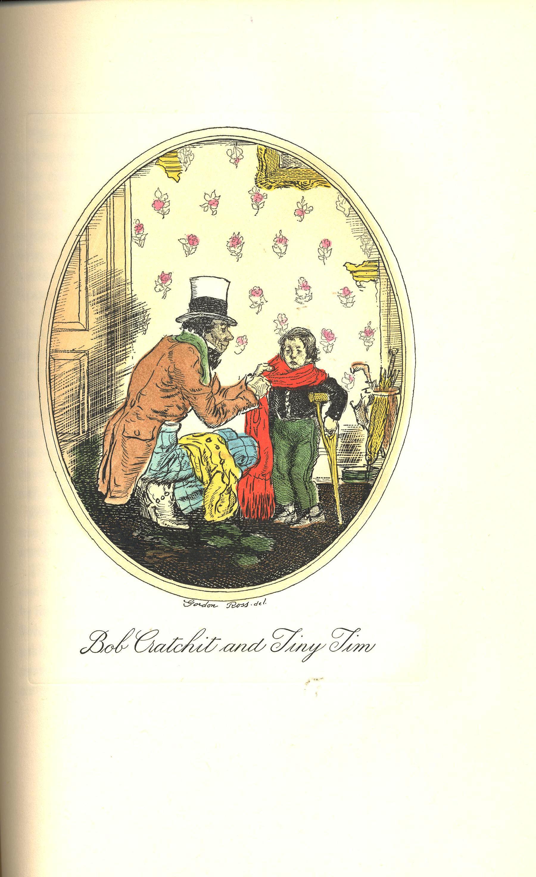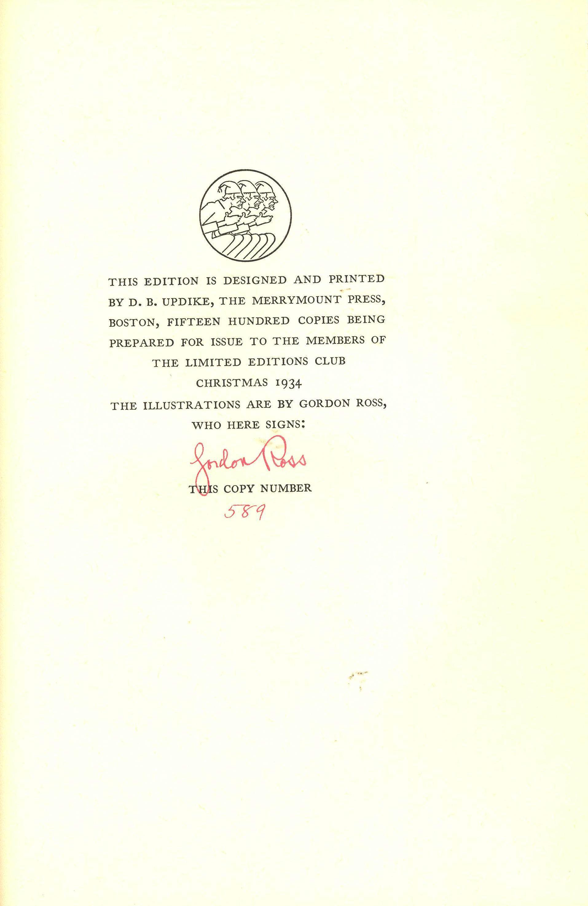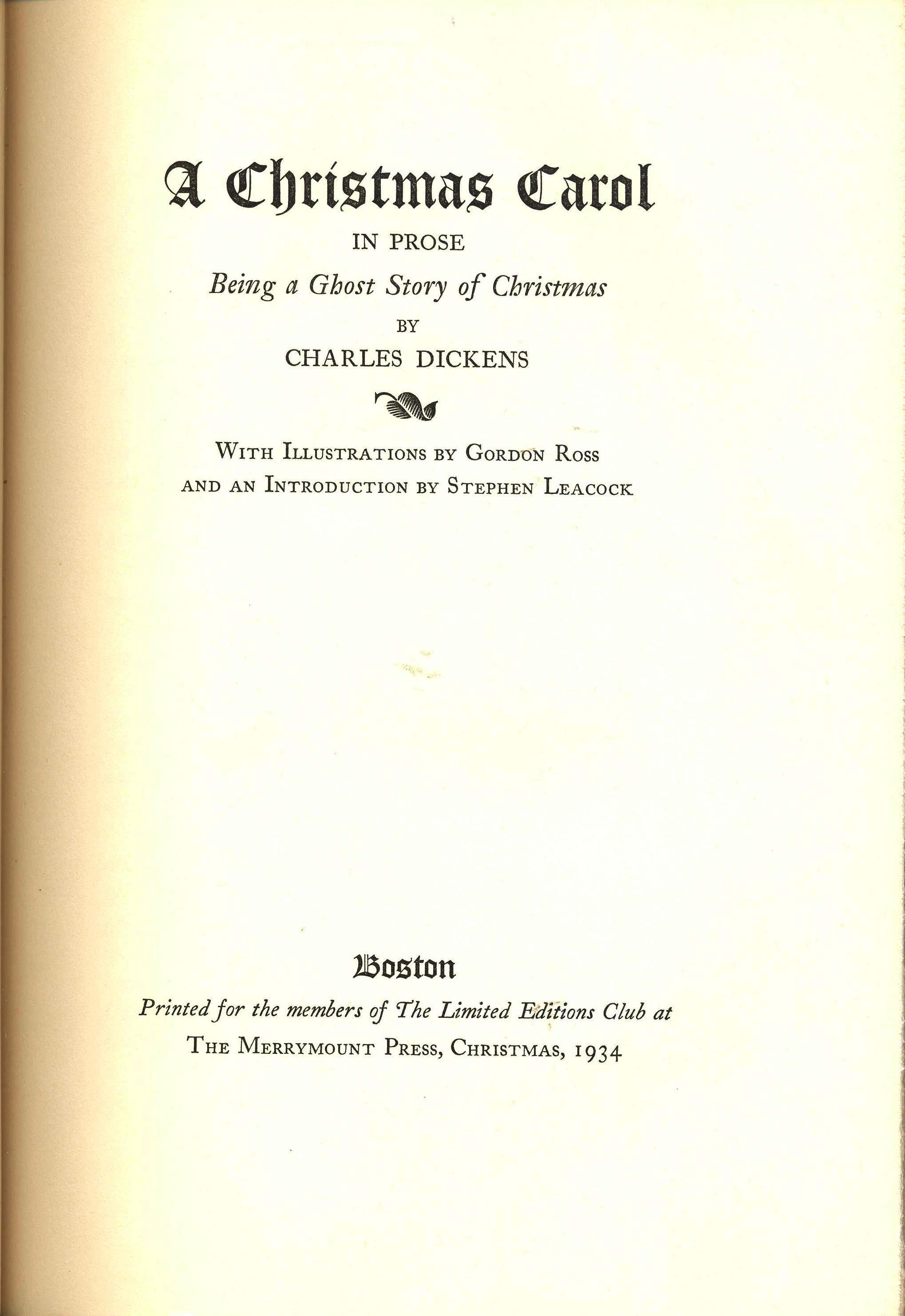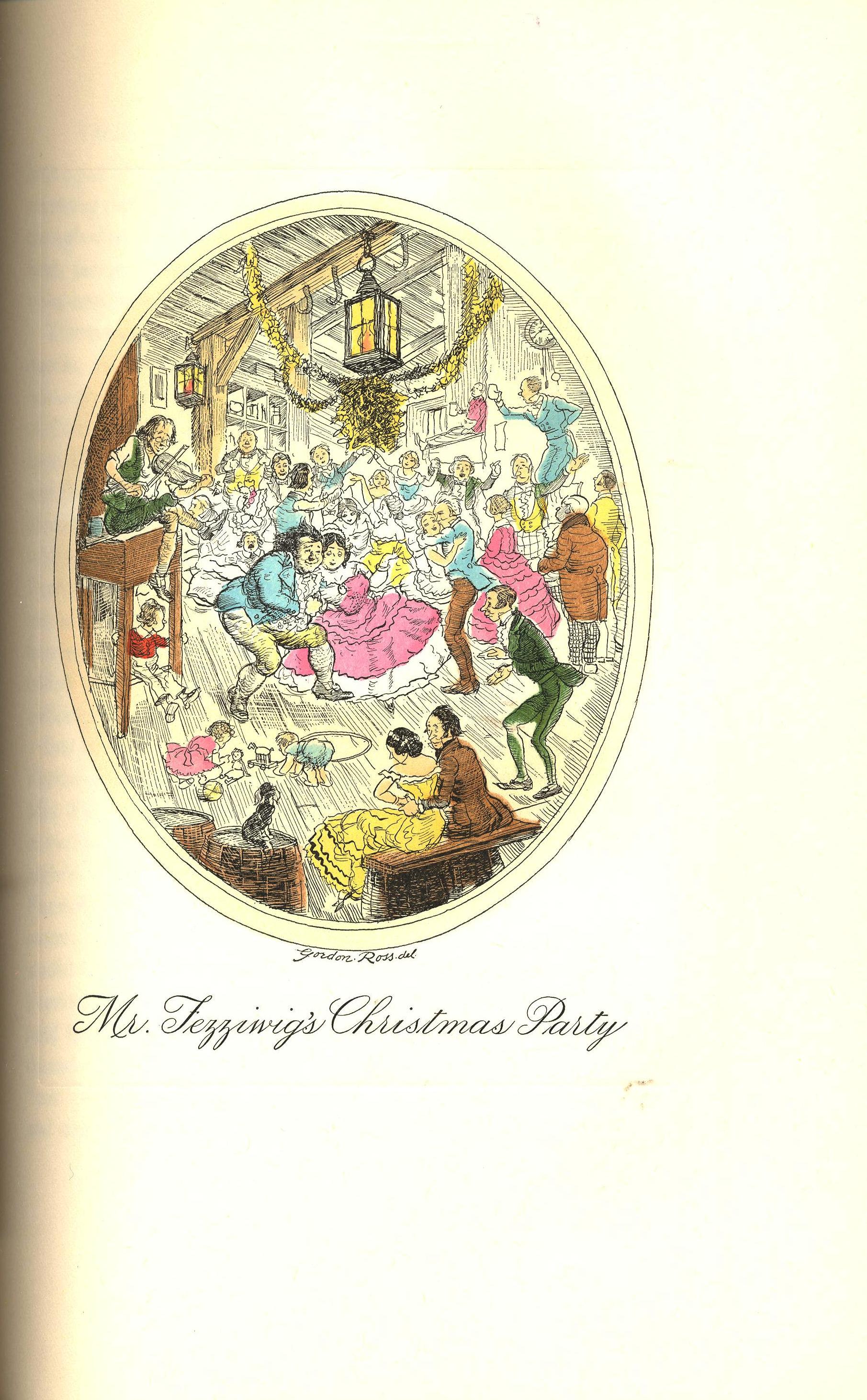Perhaps Dickens’ social critique of business running roughshod over the working man and his family found more purchase in the winter of 1934. That December, the Limited Editions Club published A Christmas Carol for its members. The book was printed a week before Christmas and found a place on the shelves in Carl Weeks’ library at Salisbury House soon thereafter. The cover featured stylized Christmas trees, and Gordon Ross’s illustrations accompanied Dickens’ text.