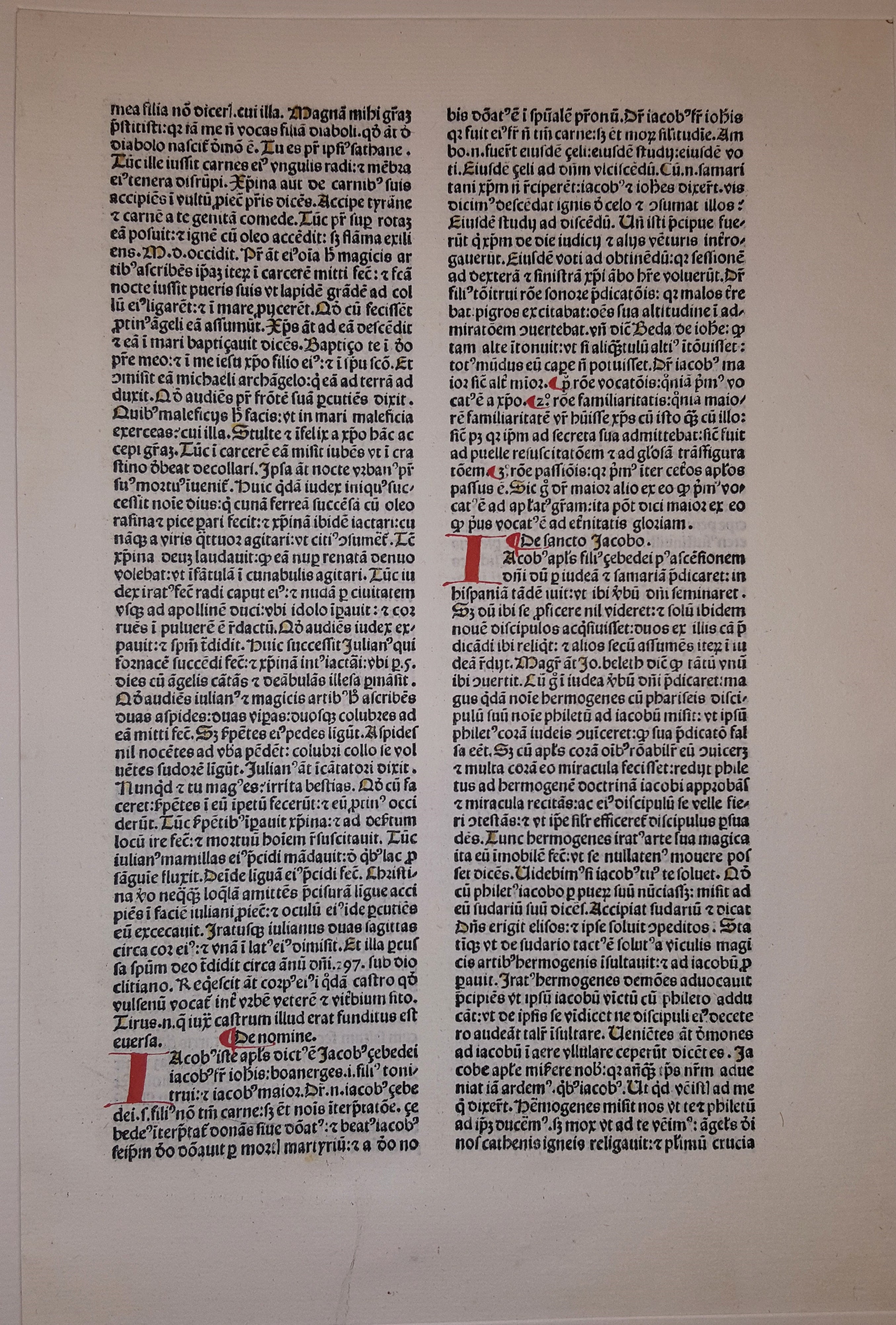 One of the most frequently-reproduced books of the Middle Ages, The Golden Legend by Jacobus de Voragine, chronicled the exploits of several Roman Catholic saints. In 1480, the Italian printer Antonio de Strata published a version of Voragine’s work in Venice.