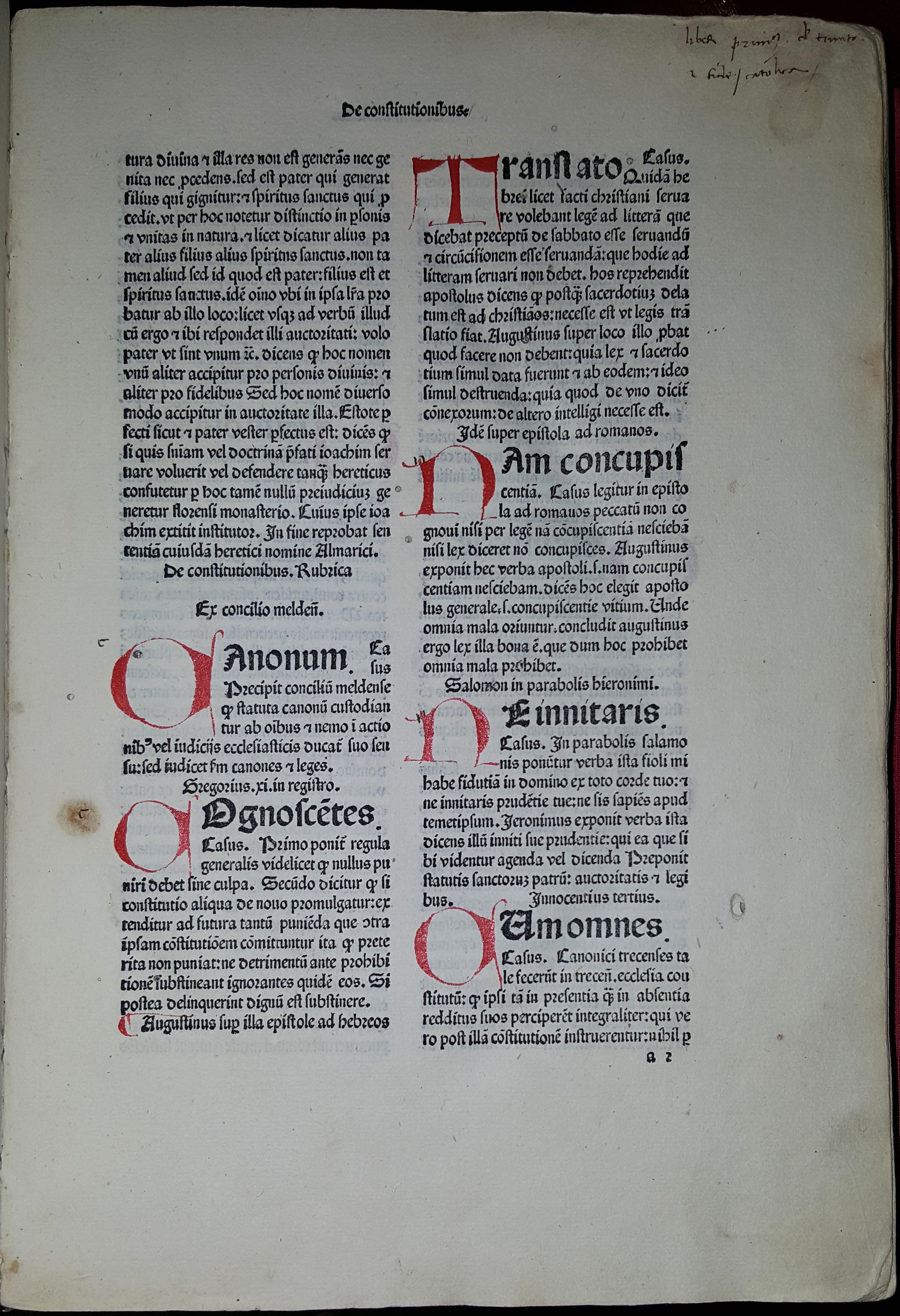 If commentaries on the obscurities of 13th-century canon law really blow your hair back, then this next incunabulum is for you. It’s an edition of Bernardus Parmensis’ exegesis of the Decretals of (Pope) Gregory IX printed in 1487.