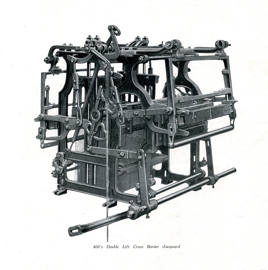 Larger looms (like the ones used to make shawls) can take up the better part of some rooms, and have hundreds of strings that are woven through to create the shawl’s pattern. Jacquard’s attachment automated the design process using a series of punch-cards. The punch-cards moved over the top of the machine, and allowed the hooks that were attached to all the strings that would be woven through to either lift through a hole to be woven under or stay low to be woven over. With this attachment, all one had to do when operating the loom was pass the wool through.